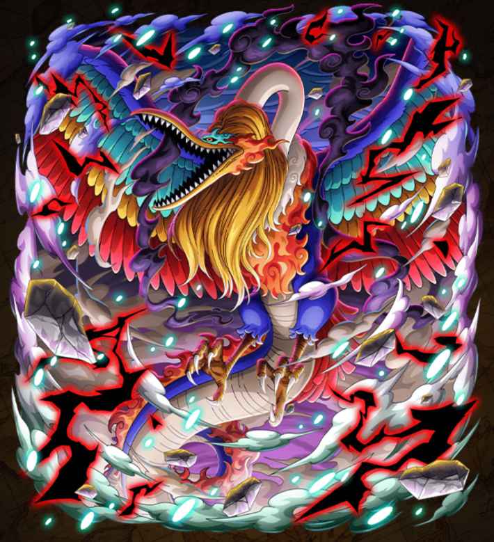 | 1ターンの間野心タイプキャラの連携攻撃力上昇3倍にし、1ターンの間一味の[力][心]スロットによる攻撃の倍率をスロット有利時2.75倍、通常時1.0倍、不利時0.5倍にする(本来の有利時倍率は2倍) |