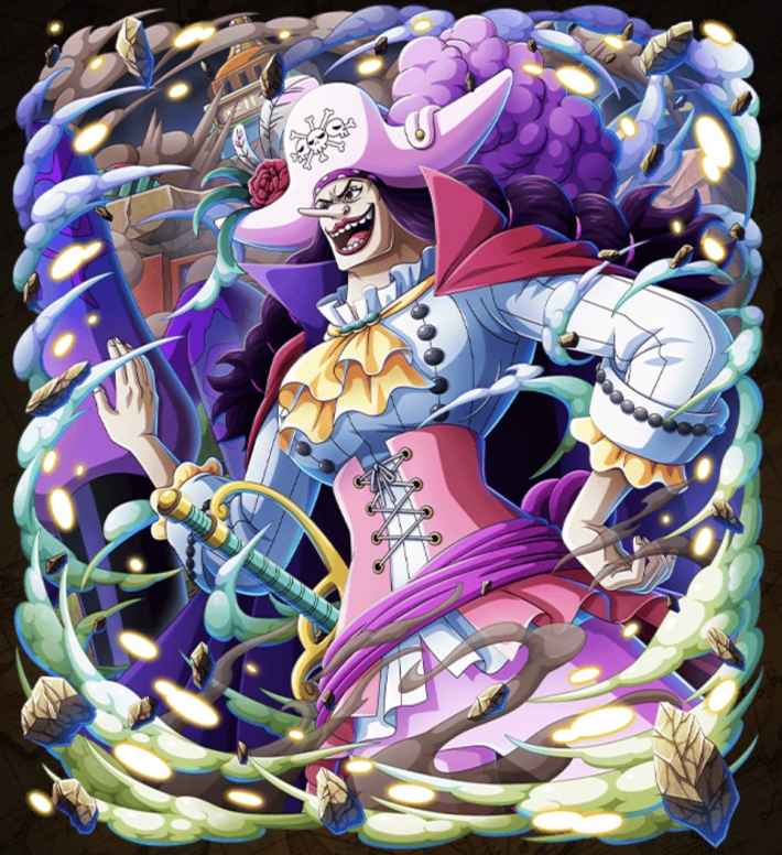 | 知属性・強靭・野心タイプキャラの攻撃を5.25倍、体力を1.5倍にし、一味は[知]スロットも有利スロット扱い、自分は全属性スロットも有利スロット扱いになる【一味のキャラタグに応じて以下の効果を発揮する]一味に[黒ひげ海賊団]が3人以上いる時、[黒ひげ海賊団]の攻撃を1.1倍、一味が発動した必殺技(サポート効果を含む)または敵の行動にて、一味が痺れ状態になる効果を受ける場合、該当効果のターンにかかわらず、2ターンの間知属性・強靭・野心タイプキャラの攻撃を2.75倍にする効果に変更される(この効果は他の攻撃上昇効果がかかった場合効果量がその値に変化し、敵の行動にて、痺れ状態になる効果を受ける場合、敵が先制行動後、もしくはターン経過後の敵の行動の種類によって、次の一味が行動可能時に変更される攻撃上昇の効果ターンが1ターンになる) |
