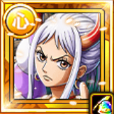 | 一味にかかっている船長効果無効・必殺封じ状態を7ターン回復し、必殺発動時すでにスロット影響増大効果がかかっている時、2ターンの間斬撃と打突タイプキャラの通常攻撃による属性相性の影響を2.75倍、その後2ターンの間斬撃と打突タイプキャラのスロットの影響を3倍にし、3ターンの間「ヤマト&モモの助」になり、一味に[光月家][ワノ国編][動物系幻獣種]が合計5人以上いる時、一味にかかっている攻撃上昇効果とスロット影響増大効果をさらに1.2倍(最大効果値7倍まで。この効果はこの必殺技のスロット影響増大効果にも影響する)、2ターンの間場を「ナワバリ:斬撃タイプ」にする(対象タイプキャラの数に応じて攻撃が最大1.5倍、被ダメージが最大25%減少) | |||