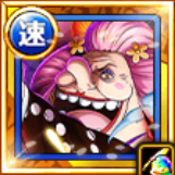 | 斬撃・打突タイプの仲間の攻撃アップLv.5、回復アップLv.5、速度アップLv.5、一味に斬撃・打突タイプが6人以上いる時、自分の攻撃アップLv.5、防御アップLv.5、一味に[動物系幻獣種][超人系][百獣海賊団][ビッグマム海賊団]が3人以上いる時、登場時に自分の必殺CTを30%短縮自分を1回まで戦闘不能時に体力を50%回復して復活する | |