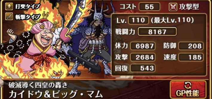 トレクルで登場するカイドウ&ビッグマム 破滅導く四皇の轟きの評価記事です。船長効果、必殺技の強い点や使い方を解説しています。育成やパーティ編成時に参考にして下さい。