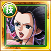 | 一味にかかっている船長効果無効・必殺封じ状態を6ターン回復、1ターンの間博識と自由タイプキャラのスロットの影響を2.75倍にし、[お邪魔]を含む全てのスロットを[技]スロットに変換、自分のスロットを[和]スロット(攻撃を2.5倍にするスロットであり、敵・味方ともに[和]スロットを変換対象とできない)に変換し、一味に[ワノ国編][超人系]が合計4人以上いる時、敵全体にかかっているダメージ無効状態を2ターン減らす | |||