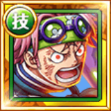 冒険開始時一味の必殺ターンと入れ替え回数を1短縮、技属性・格闘・強靭タイプキャラの体力を1.35倍、攻撃を4.75倍、同属性・同タイプキャラ以外の攻撃を3.5倍にし、船員の速と技属性のキャラが必殺技を発動した時、自分の入れ替え回数を1短縮、一味の次回の最後のタップ時の攻撃を5%上昇させる。最終BATTLE以外で最後のタップ時の攻撃上昇効果が発動させる【一味のキャラタグに応じて以下の効果を発揮する】一味に[エッグヘッド編][海軍]が合計4人以上いる時、一味が ・ 状態になった場合(船長・船員効果によって発動した効果には適用されない)、一味にかかっている ・ 効果をさらに1.1倍する(最大効果値8倍まで、再上昇不可能) |