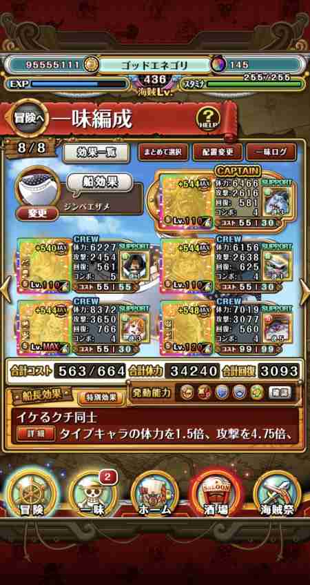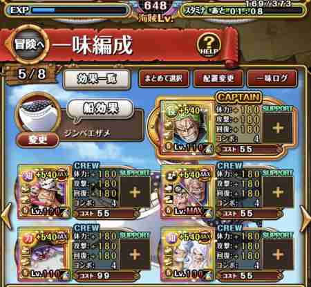 【所持している主な船長】ゾロナス、カコビガープ、クザン黒髭