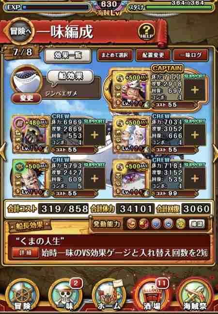 【所持している主な船長】ニカボニー、くま、サターン、ハンコックなど
