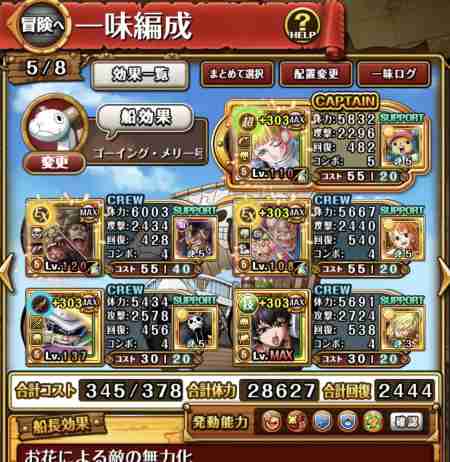 【所持している主な船長】ニカボニー、くま、サターン、ガープ&コビー、黒ひげ&クザン、ひばり