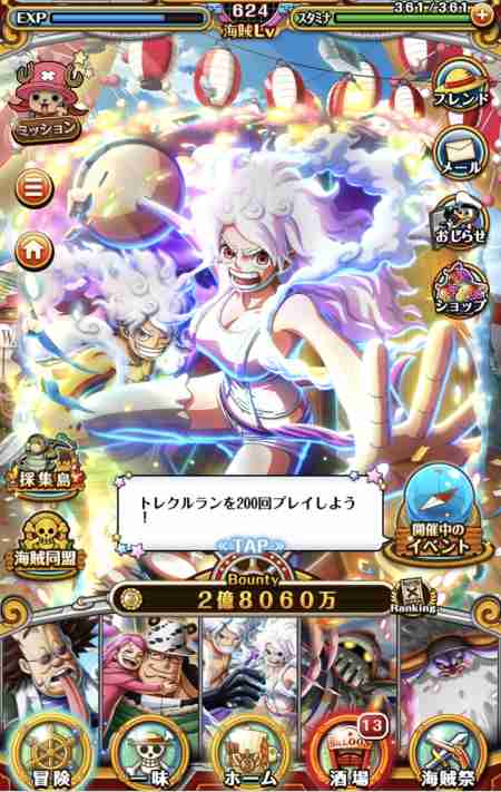 【所持している主な船長】ニカボニー、ナミカリ、チョッパー、ロジャーなど報酬アップ系船長が多いです